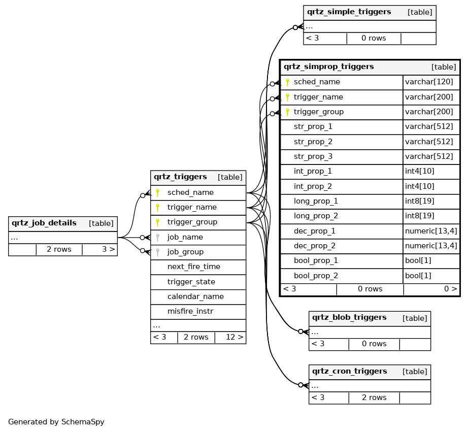 | qrtz_simprop_triggers_pkey | Primary key | Asc/Asc/Asc | sched_name + trigger_name + trigger_group |